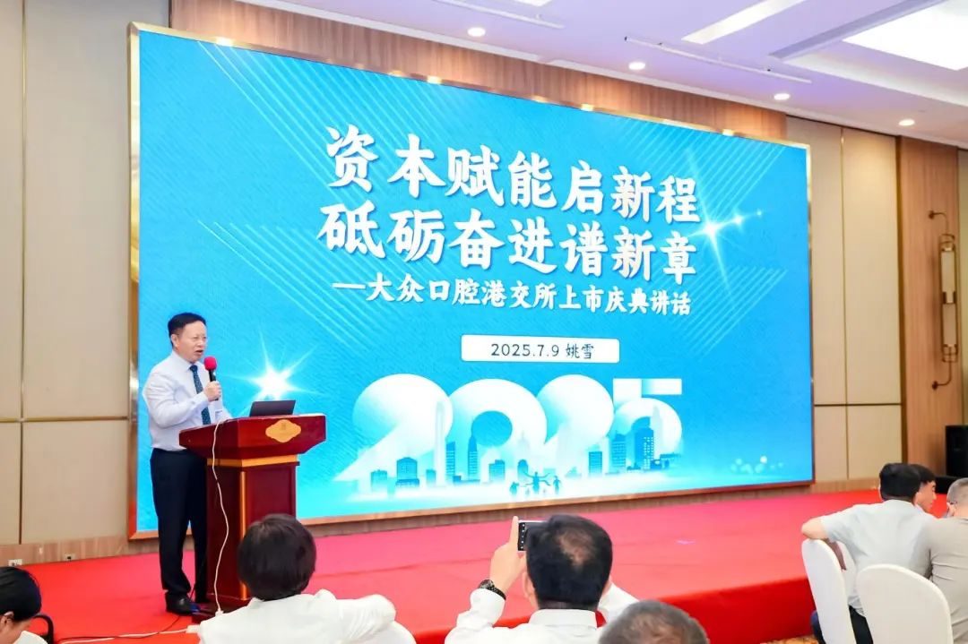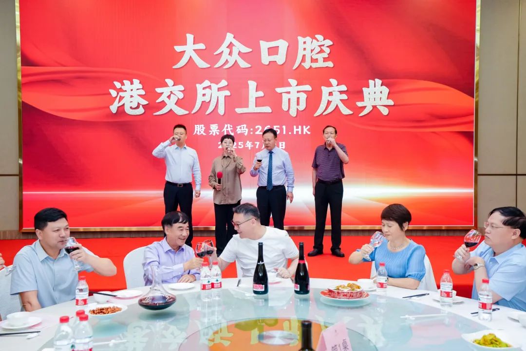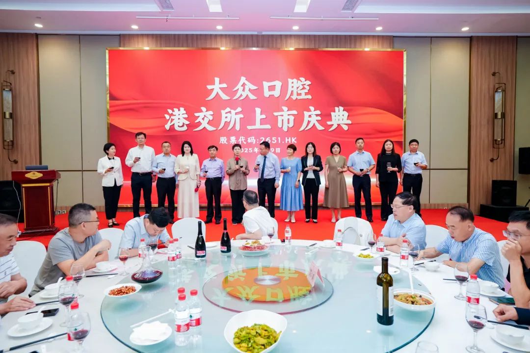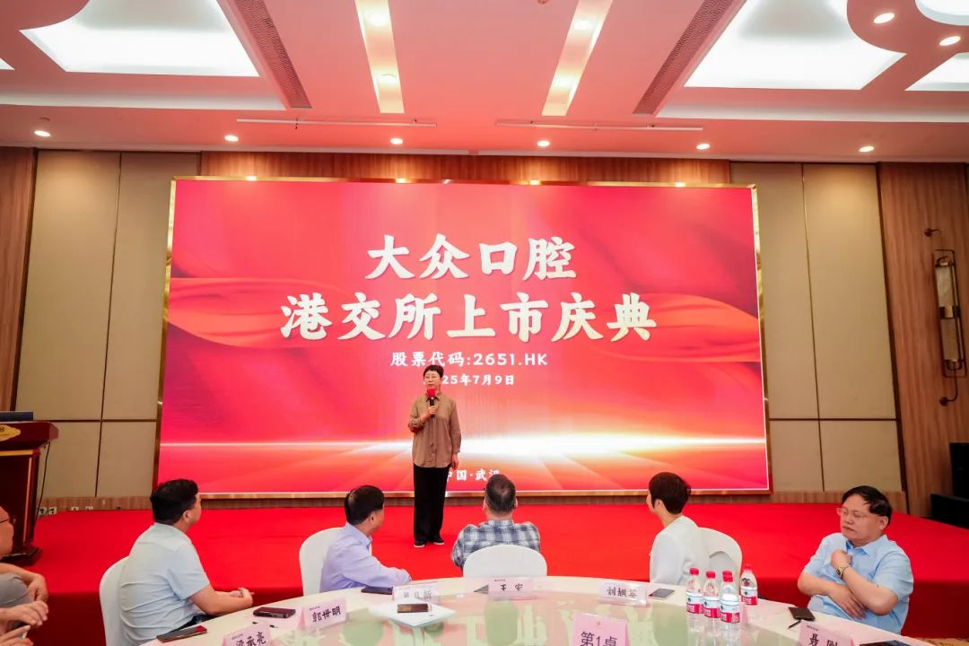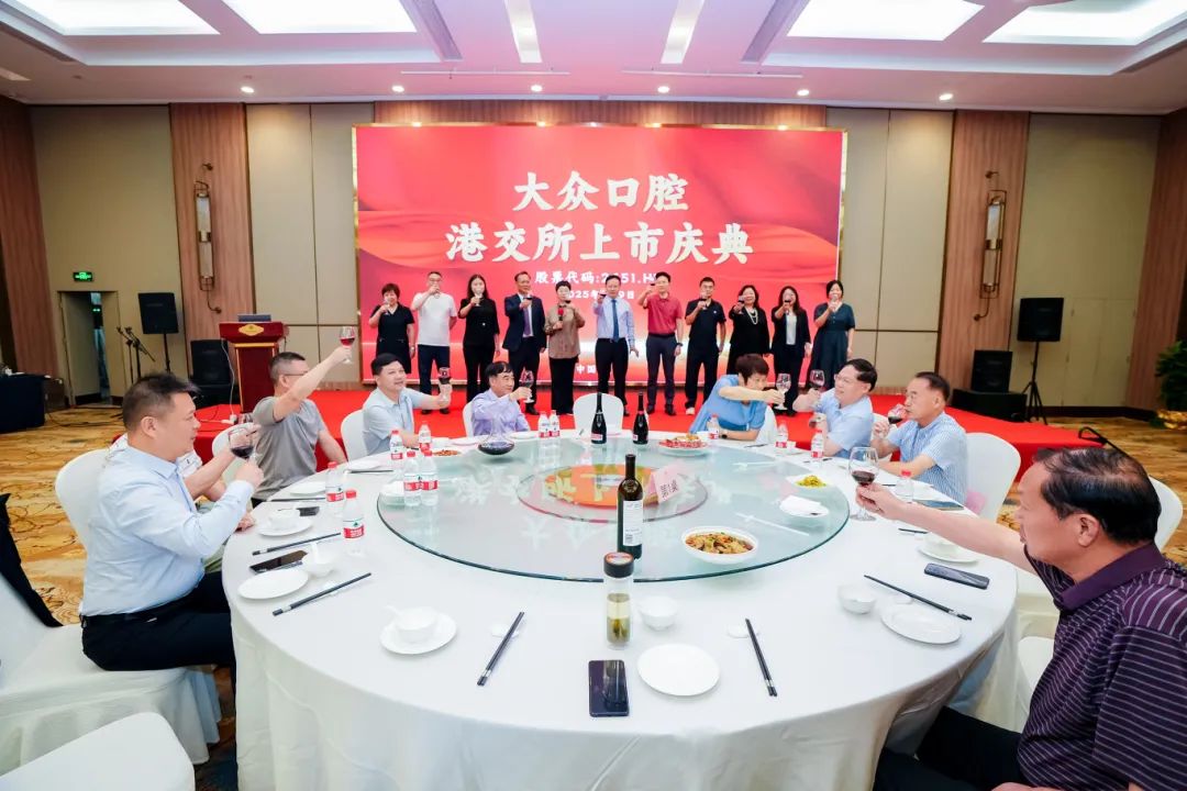 2025年7月9日,大眾口腔(2651.HK)成功登陸港交所,開啟資本市場新征程。當(dāng)晚,公司舉辦港交所上市慶典。全體管理人員歡聚一堂,共同慶祝這一里程碑時(shí)刻。慶典由總經(jīng)理沈洪敏主持。