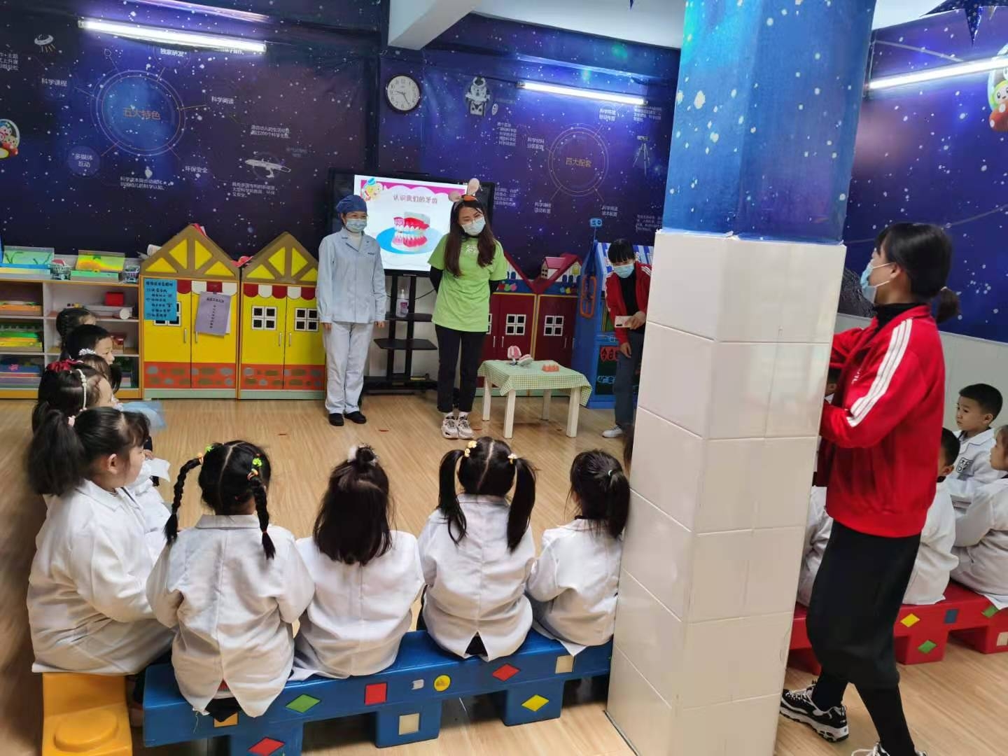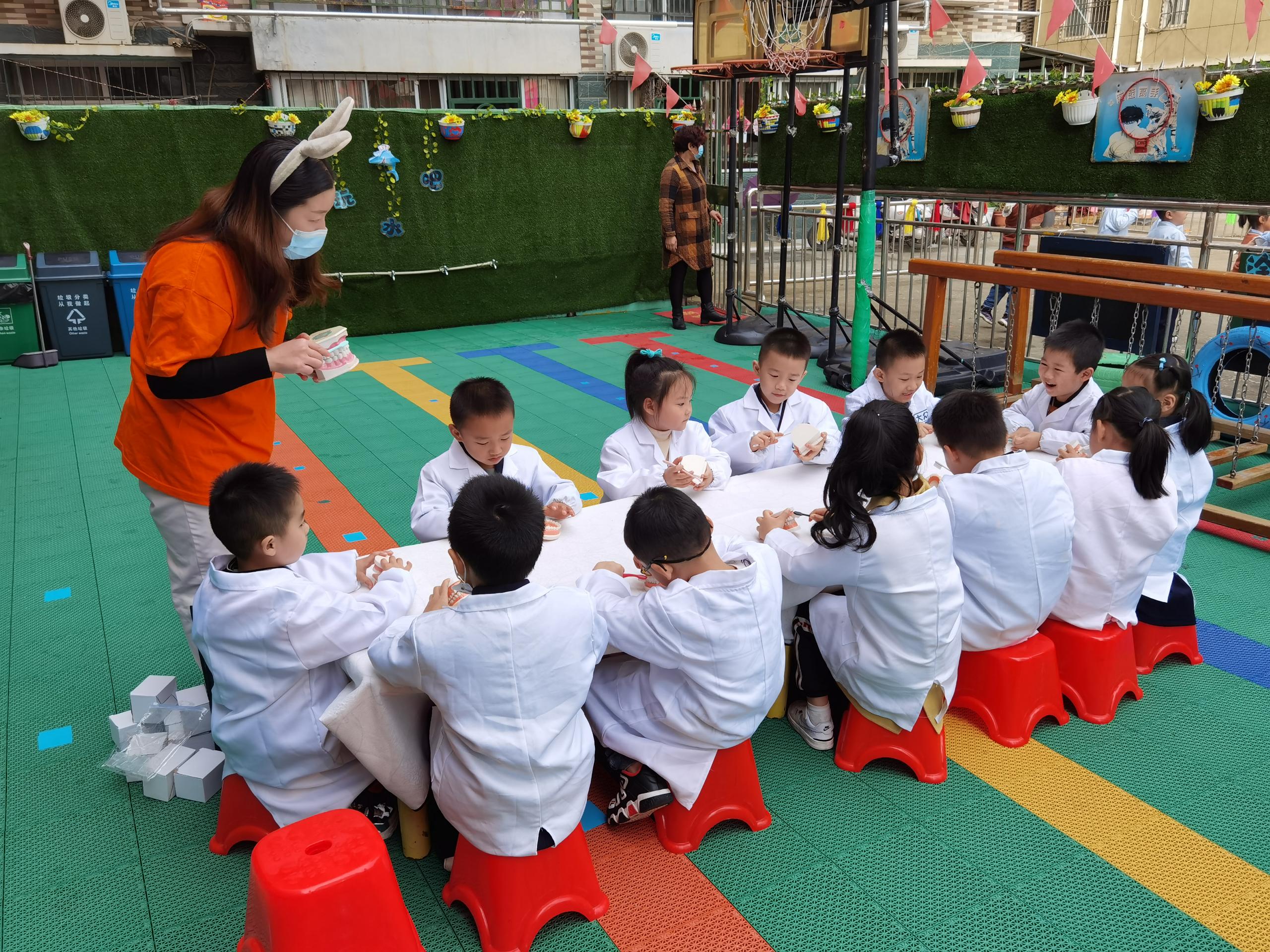 親自體驗牙醫(yī)真實工作,牙醫(yī)職業(yè)技能GET~~~寶貝們都穿上了專門為小牙醫(yī)們準備的白大褂,大家都變身小牙醫(yī)啦,醫(yī)生范兒十足!