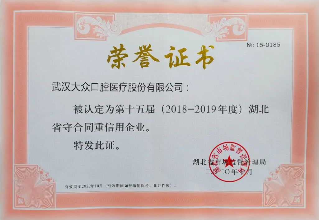 2020年—愛尚大眾口腔被評為湖北省“守合同重信用”企業(yè)
